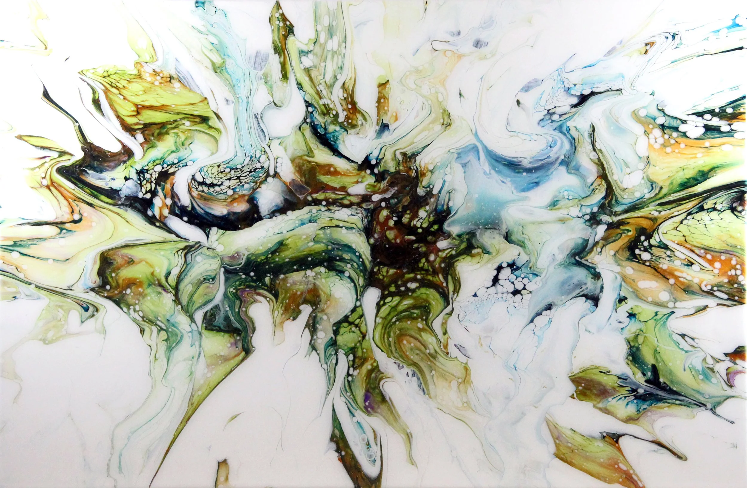 Fascinated by the chemical reactions of organic compounds found in nature, she has spent the past two years experimenting with various pigments, mediums, and catalysts to replicate these molecular processes in her artwork.